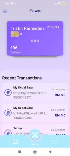 Ibu Bapa & Penjaga boleh muaturun aplikasi (Android) untuk tambah kad NFC anak-anak, tambah kredit dan juga lihat rekod perbelanjaan.
