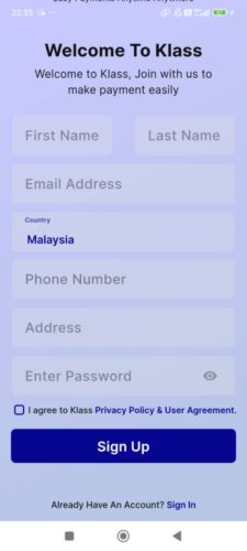 Tekan butang “I agree to Klass Privacy Policy & User Agreement”