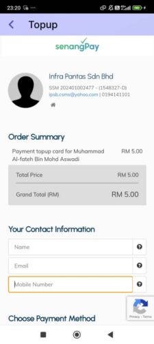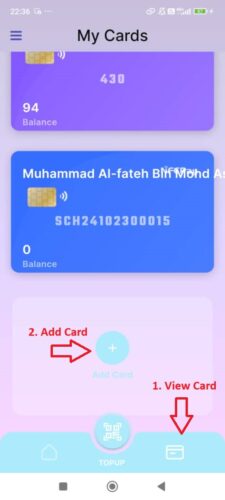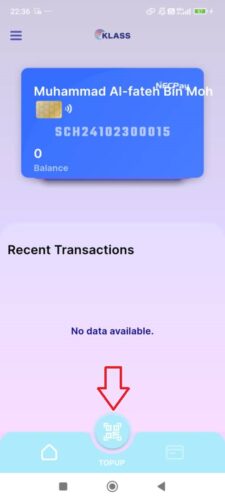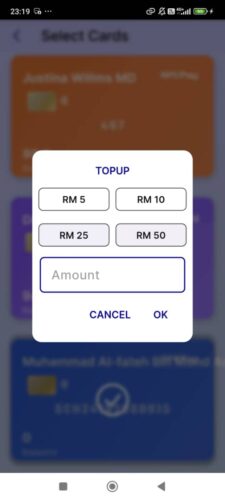 Tekan pada ikon “Topup” untuk mulakan proses tambah nilai kad.